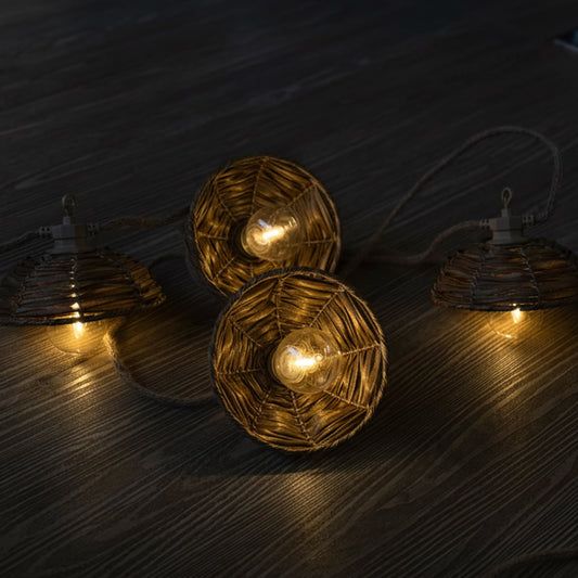 Guirlande lumineuse extérieur raccordable 10 abat-jour naturels en rotin MALY LIGHT HYBRID LED blanc chaud 8m solaire et sur secteur