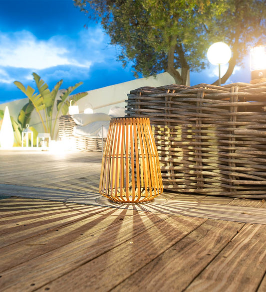 Lanterne solaire décorative en poly rotin LED blanc chaud CAPRI SMALL H32cm