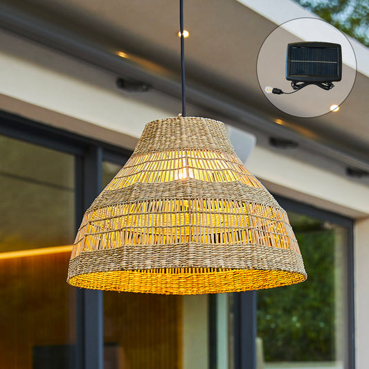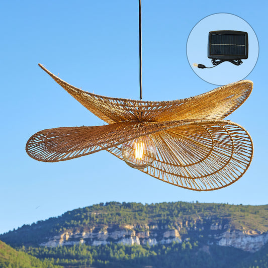 Suspension solaire GIACOMO SOLAR en rotin naturel avec câble hybride secteur et solaire 5m de longueur