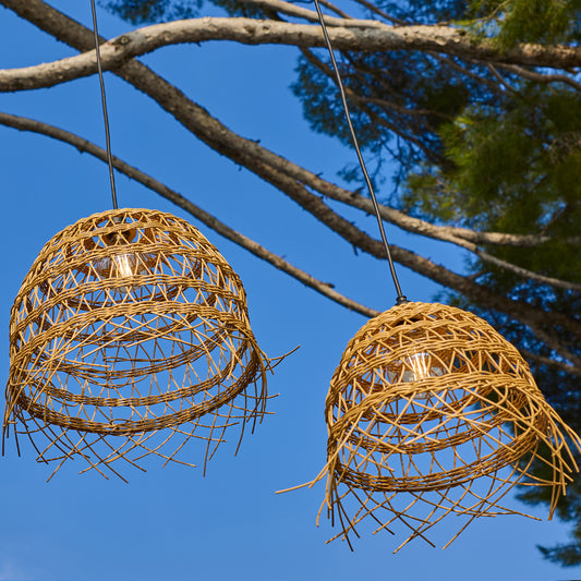 Netzbetriebene Pendelleuchte für den Außenbereich MYKONOS OUTDOOR CABLE im natürlichen Rattan-Bohème-Stil 5m Kabellänge