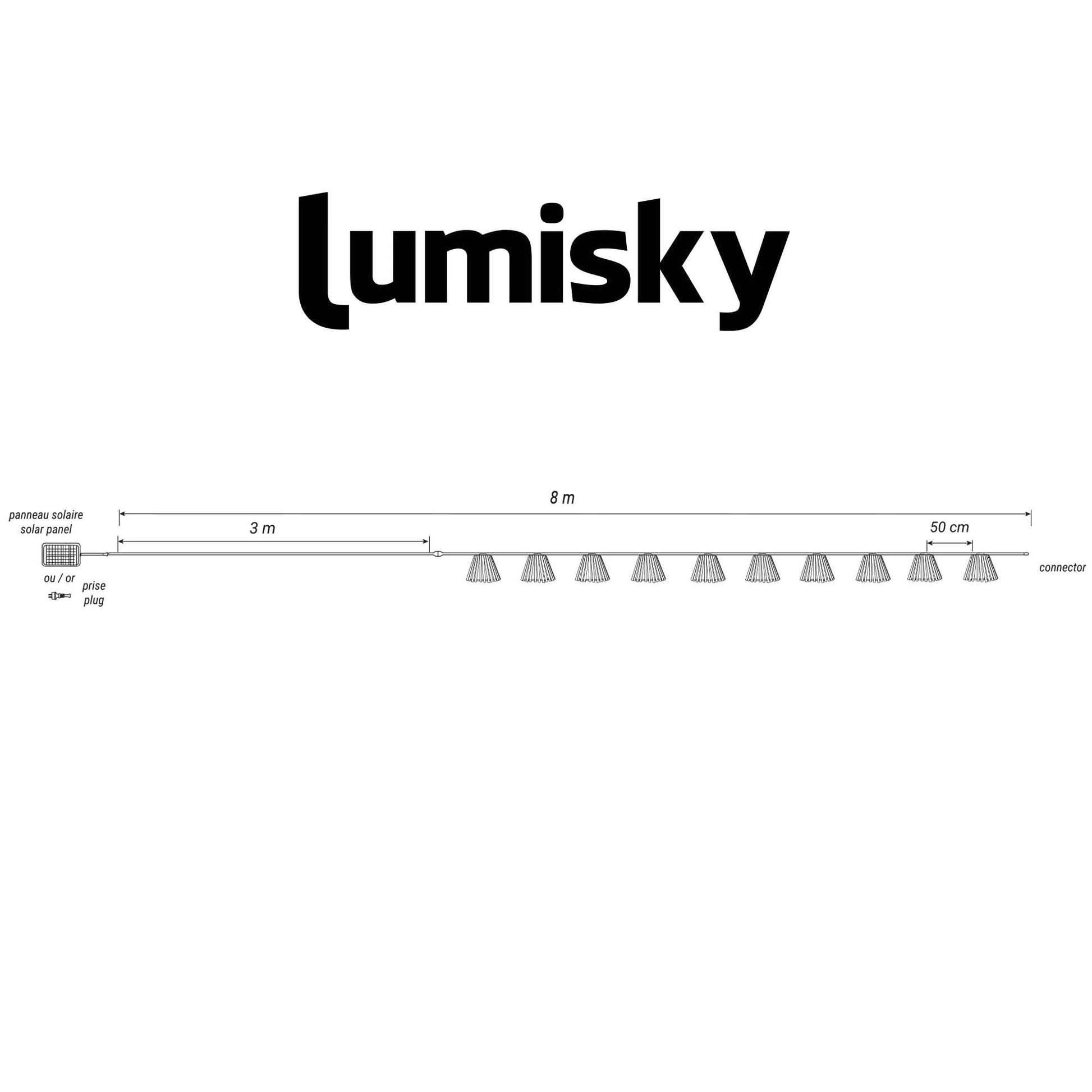 • Durabilité : La guirlande solaire LED Natura Light Hybrid design d’une longueur totale de 8m composée de 10 ampoules transparentes est protégée contre les éclaboussures (IP 44) et résiste aussi aux UV. Il y a 50cm entre chaque ampoule.