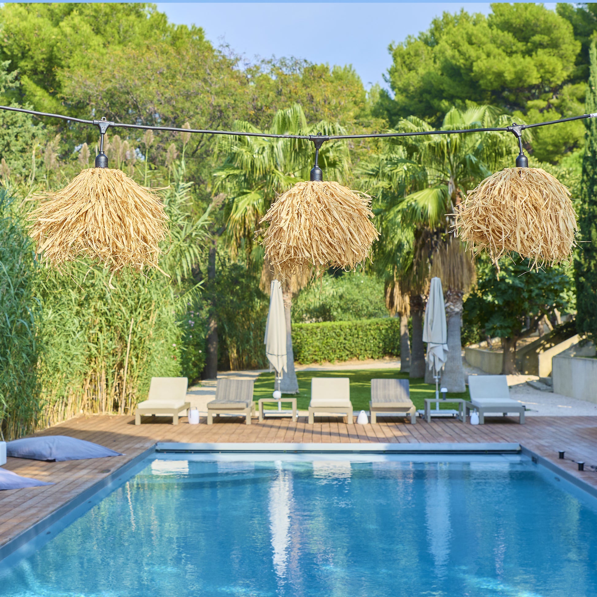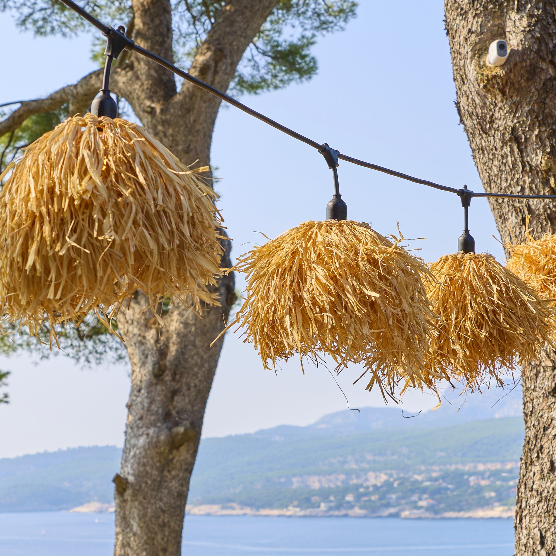 Guirlande lumineuse extérieure raccordable 6m avec 7 ampoules LED filament E27 blanc chaud FRUFRU LIGHT Abat-jour en jute bohème