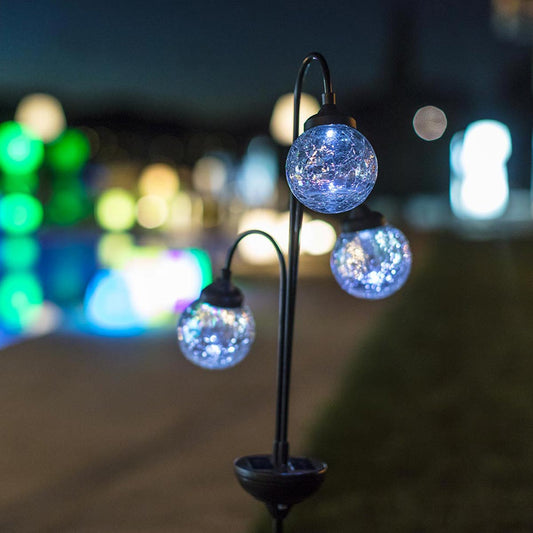 Balise solaire décorative 3 boules verres craquelées LED blanc TREE BALL H82cm