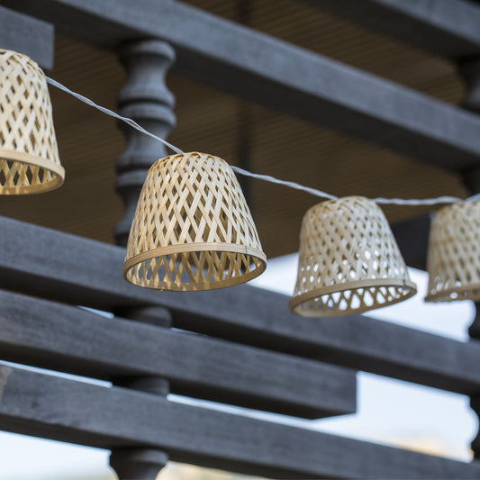 Guirlande lumineuse solaire et avec prise bambou naturel 10 abat-jour LED blanc chaud CHILL HYBRID 3.80m
