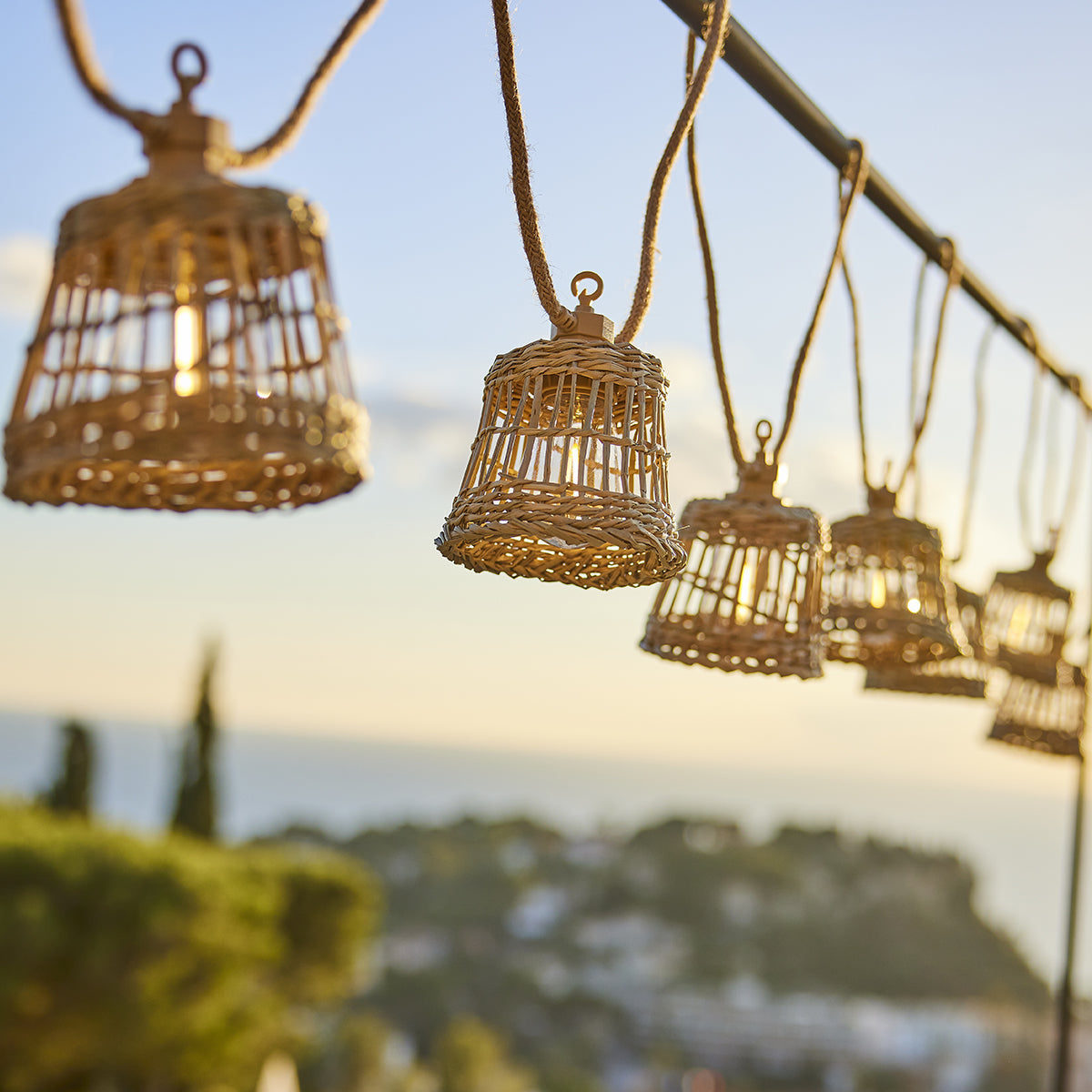 Guirlande lumineuse solaire et sur secteur raccordable en corde 20 ampoules transparentes LED blanc chaud dimmable SAMOA LIGHT HYBRID 13m